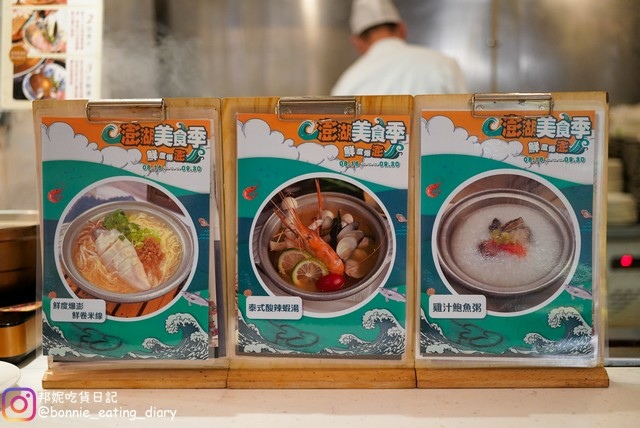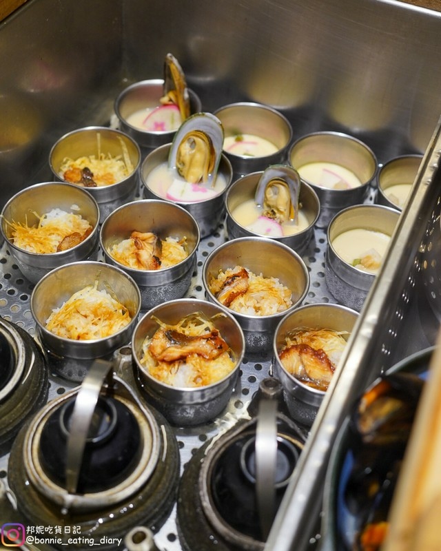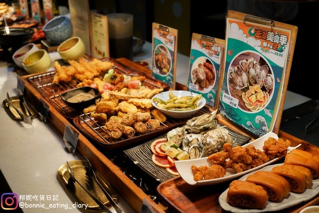 現炸的各式天婦羅,串燒,泰國蝦,還有海鮮茶碗蒸,土瓶蒸,燒賣,甚至引進花蓮的公正包子,豐富度超高
