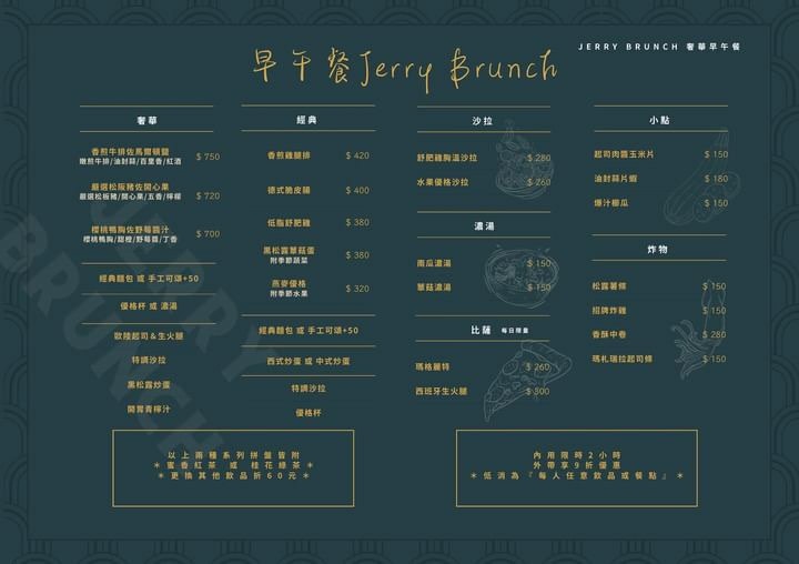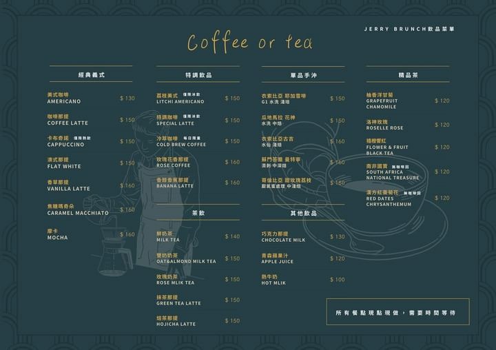 菜單主要為早午餐盤的形式,飲品部份則有咖啡跟茶,早午餐盤有份經典跟奢華,價格反應在配料的部分, 不過店家的早午餐盤份量都很大, 推薦可以兩個人分食在配上飲料跟小點