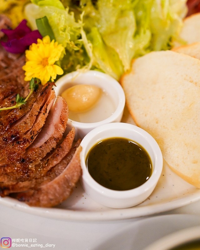 麵包偏扎實的口感,有先微微烤過,搭配的是店家自製的一整顆油封蒜,原本看到一整顆大蒜有點害怕,沒想到只有蒜的香氣但不會濃也不會嗆超讚