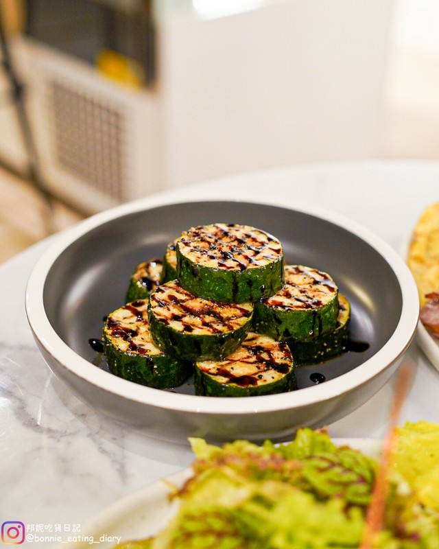 如果有肚子的話這道必點!烤的超多汁的櫛瓜咬下去直接滴汁,淋上黑橄欖油跟巴薩米克醋膏,很清爽好吃