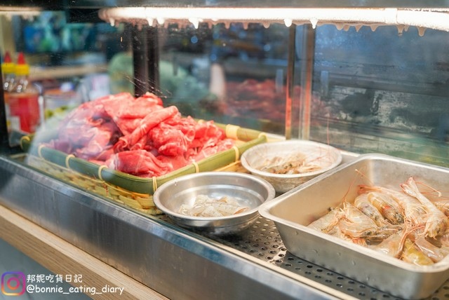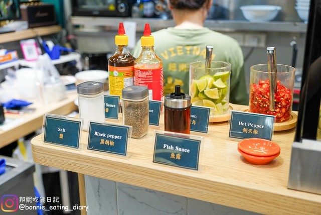 一進門就可以看到食材像是牛肉片,蝦子等等在透明冰箱中,醬料區有各式越式必備醬料,可以依照需求自行添加