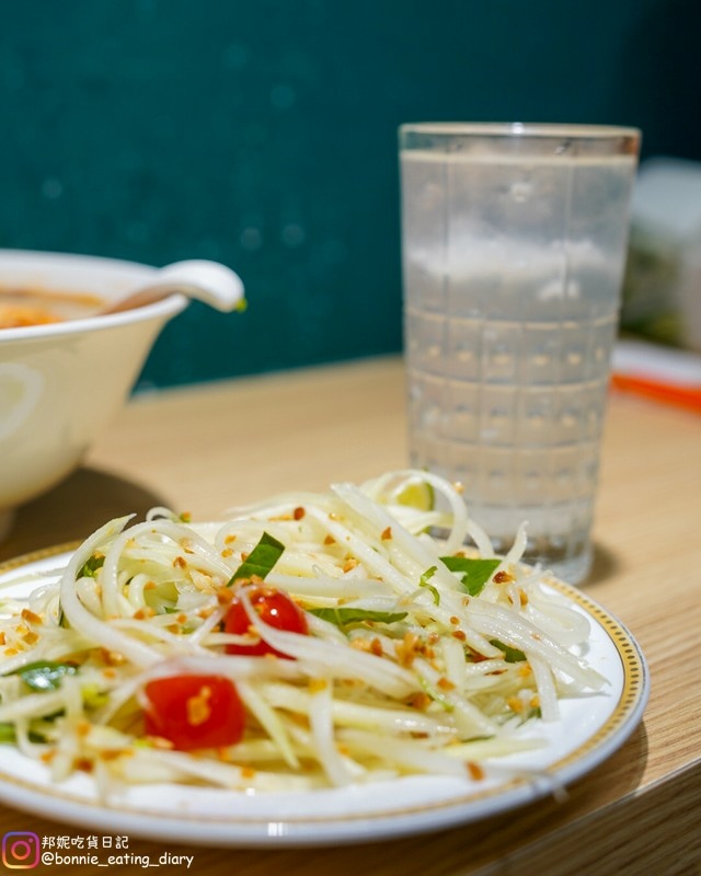 🔸青木瓜絲偏常溫,青木瓜絲口感頗脆,搭配花生粒花生香氣較重,也有檸檬可以自行添加