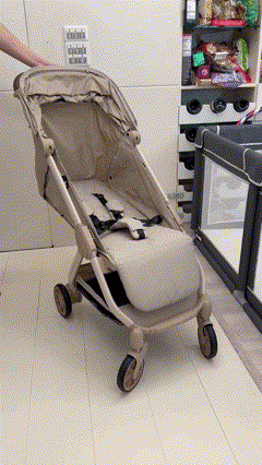 相信很多人在選擇推車的時候,可以優雅的收車絕對是很重要的考量,收車的步驟相當簡單,只需要單手按壓前後的按鈕, 再施一點力推車就會自動收車
