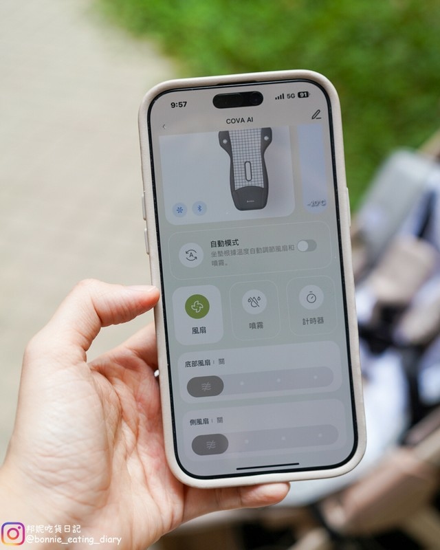 邦妮覺得「COVA AI水冷風扇涼墊」真的很科技,結合APP跟自動溫度感測可以自動調整很聰明,雖然以我平常的使用情境大多會直接開到最大風扇,但是可能在譬如剛從戶外上車,或是在比較冷的室內冷氣房可能就會想把水霧功能關掉,這時候就完全可以體會到好處跟方便性了!