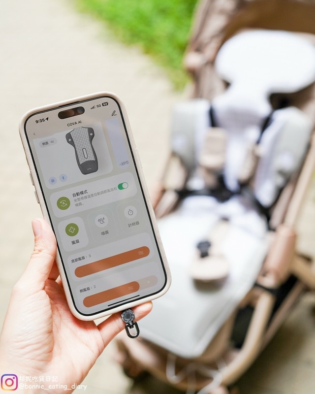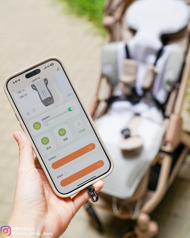我覺得「COVA AI水冷風扇涼墊」讓人第二個驚豔的點就是竟然有APP! 想不到現在連育兒用品都這麼高科技,APP的連結非常簡單使用藍芽就可以輕鬆連上,坐墊的開關位在最下方平常可能都要彎腰找開關,有時候甚至在車上也不方便邊開車邊調整風扇,但有了APP的幫忙,不論是開車或行走期間,想開就開想關就關,還可以隨時調整主、側風扇風量,水霧、自動模式甚至還有計時器!