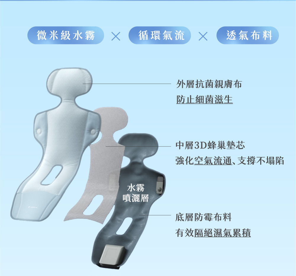 微米級的水霧讓我的相機一直對不到焦,只能簡單用gif呈現,使用時但並不會一直噴水霧,而是間歇性的噴灑,所以座墊不會濕濕的